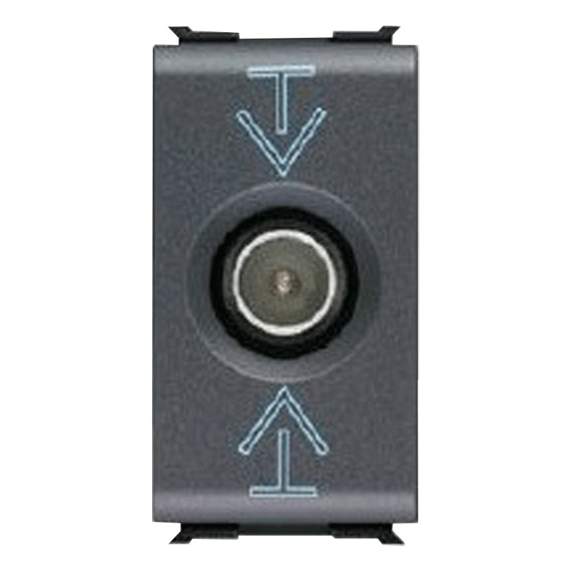 Toma coaxial de TV directa Abb Elos, con conector macho IEC de 9,5 mm de diámetro, 1 módulo, color negro. Para aplicar en los soportes 2CSE1603EL, 2CSE1604EL, 2CSE1605EL.