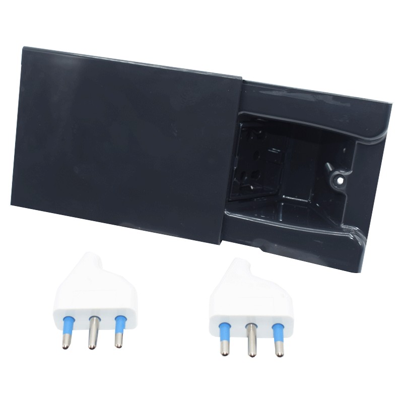 Tech 4box Ocultar la toma de corriente oculta con una toma de corriente universal Side, con marco y tapa deslizante, color gris oscuro. Tiene una solapa que permite ocultar las tomas de corriente incluso con los cables insertados. Se debe montar en cualquier caja empotrada 3 lugares. No requiere soporte ni otros componentes.