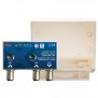 Amplificador de poste FTE con 2 entradas BIII + UHF, alimentación de 12V, ganancia de 25/25 dB, nivel de salida de 112 dBµV, totalmente blindado, equipado con filtro LTE interno y caja de plástico resistente a la lluvia.