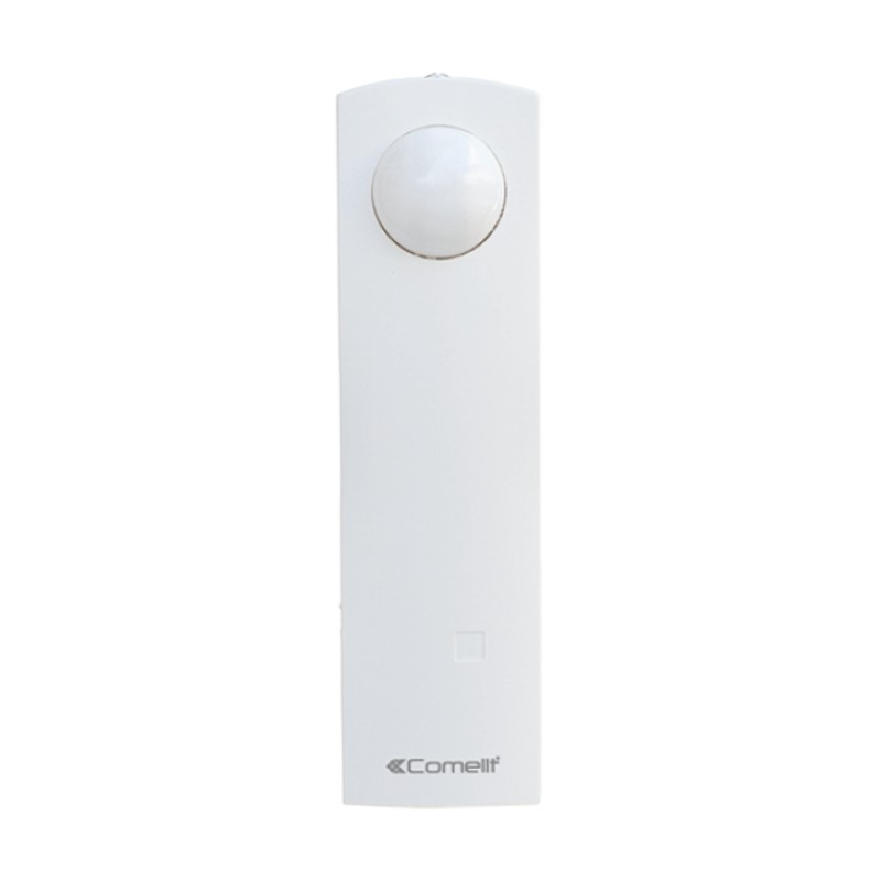 Sensor Comelit con doble tecnología de cortina Microondas y PIR, blanco, capaz de crear una barrera de protección de cortina útil para puertas y ventanas.