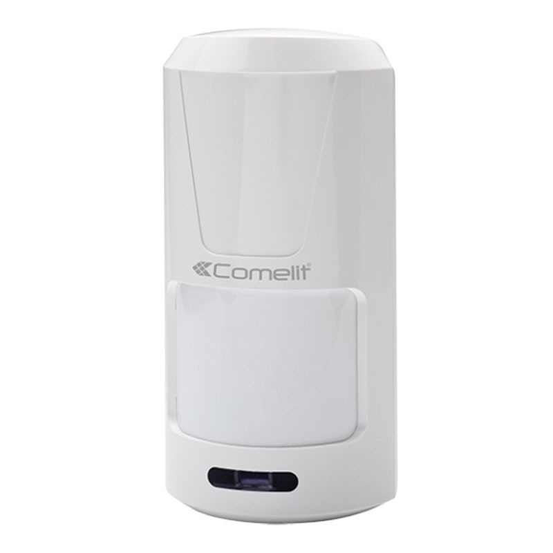 Detector Comelit de doble tecnología PIR + Microondas 10.525 GHz alcance 15 m, ángulo de cobertura 90°. Y/O seleccionable, función de triple toque, análisis de señal digital. Protección contra la polaridad inversa, salidas de relé de estado sólido.