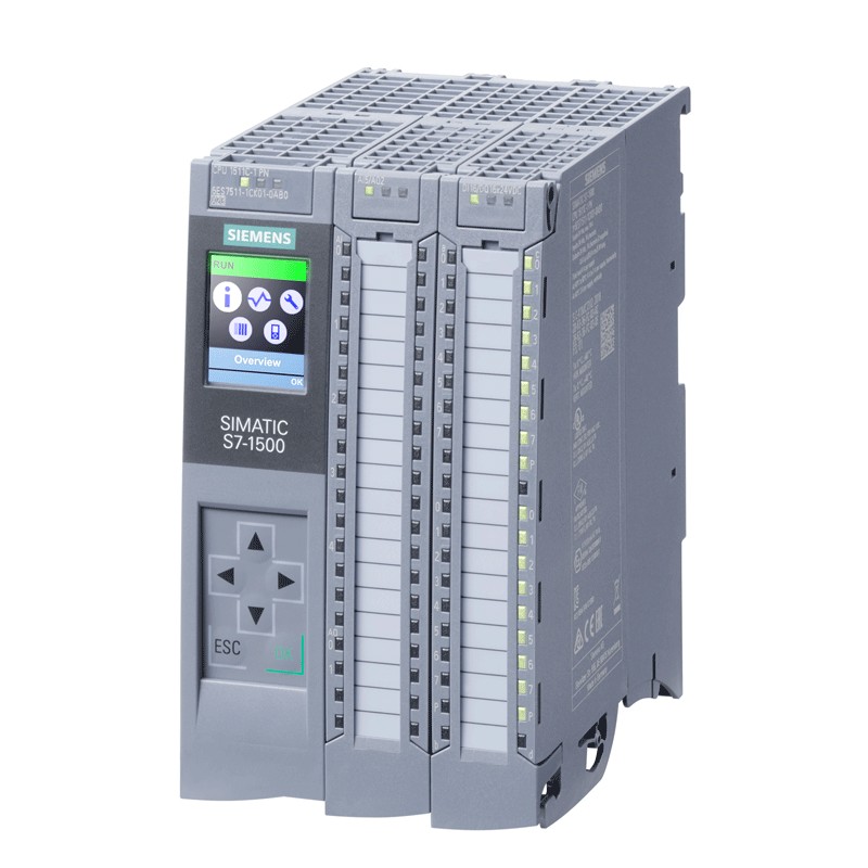 CPU compacta de Siemens Unidad central SIMATIC S7-1500 con 175 KB de memoria de trabajo para el programa y 1MByte para los datos 16 entradas digitales, 16 salidas digitales, 5 entradas analógicas, 2 salidas analógicas, 6 contadores rápidos, 4 salidas rápidas para PTO/PWM/salida de frecuencia 1ª interfaz: PROFINET IRT con 2 Port Switches, rendimiento de bits de 60 ns, incluido conector frontal Push-In, se requiere SIMATIC Memory Card.