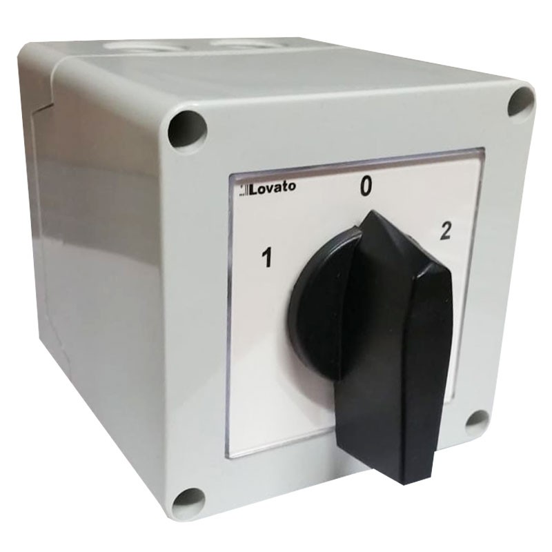 Interruptor de línea Lovato de cuatro polos con perilla 4P 32A en una caja (dim.75x75) 7GN3275P