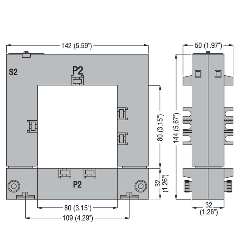 Sontransformadores de corriente sin devanado primario y se utilizan normalmente para valores de corriente primaria elevados a partir de 40A. El número de pasos del cable primario no cambia las características de precisión, pero reduce el valor de la corriente primaria con la misma corriente secundaria.
