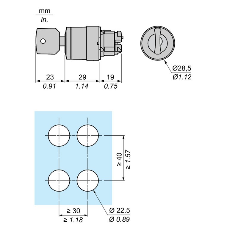 - Diseñado para encajar en un orificio estándar de 22 mm para garantizar la compatibilidad en la maquinaria existente