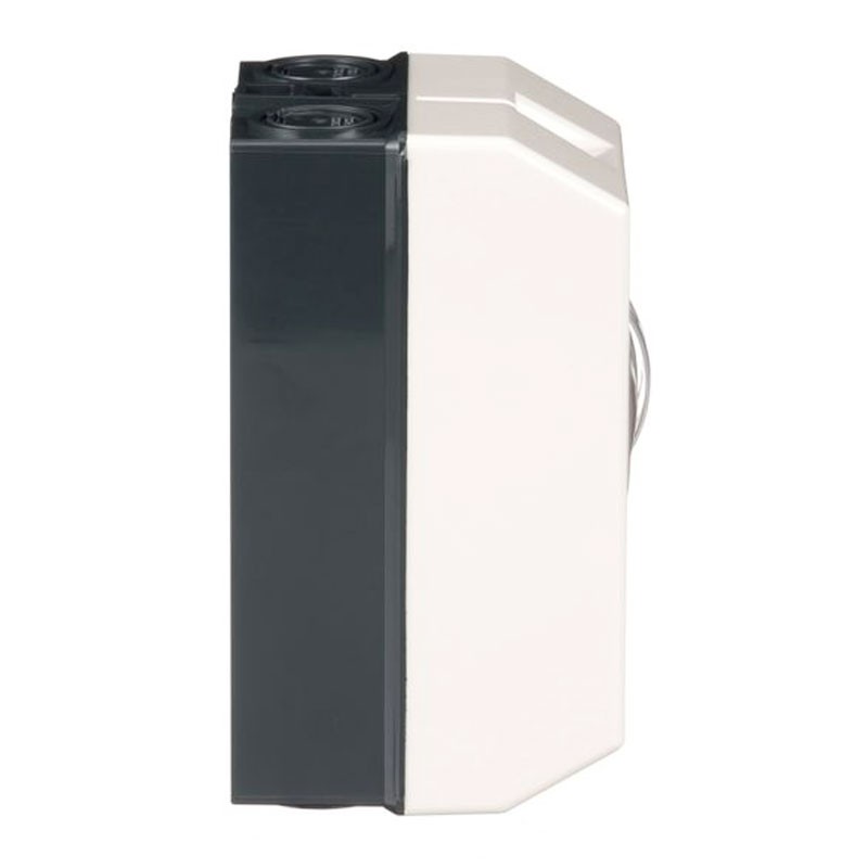 Caja vacía, para disyuntor termomagnético GV2ME. Caja para montaje en superficie con fijación por tornillos, 2 orificios para prensaestopas en la parte superior e inferior, tapa precintable. Carcasa de policarbonato, doble aislamiento con conductor de protección, protección IP55.