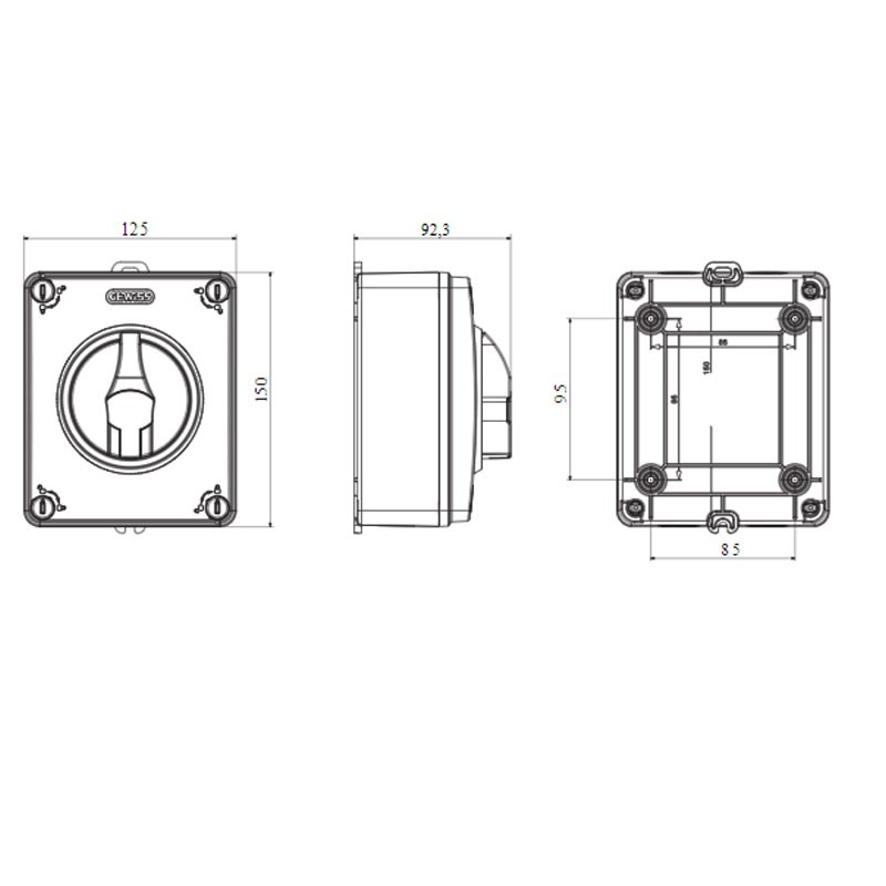 Interruptor seccionador rotativo Gewiss, con las siguientes características: