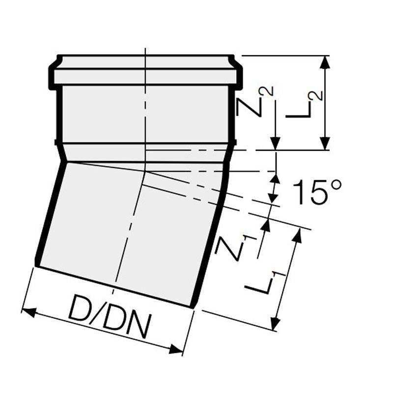 Curva de 15 grados para tubos de descarga insonorizante de PP Polipropileno Valsir PP3 enchufable con las siguientes características :