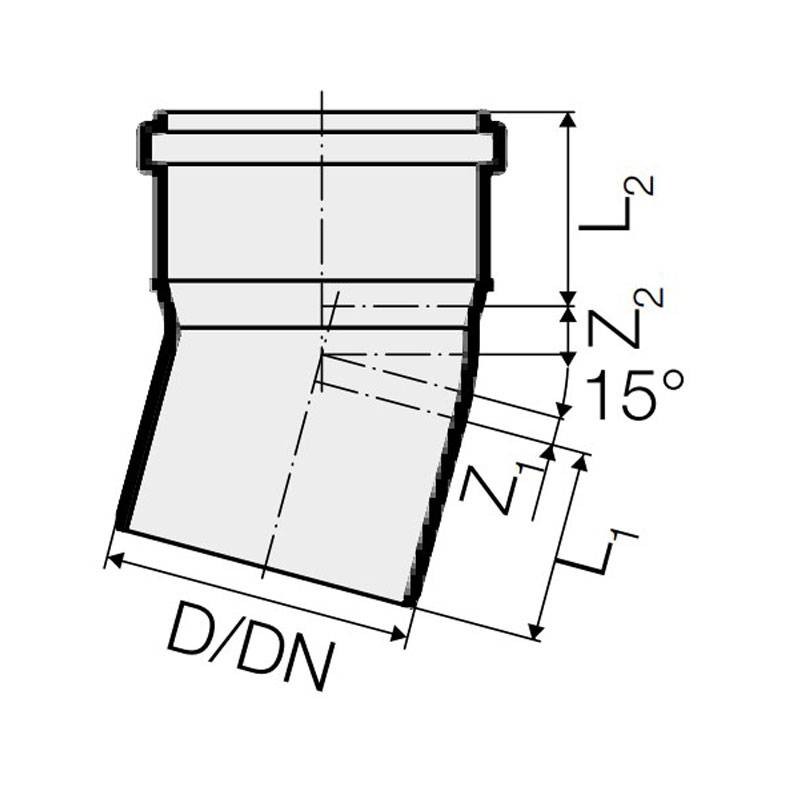 Curva de 15 grados para tubos de descarga insonorizante de PP Polipropileno Valsir Triplus enchufable con las siguientes características :