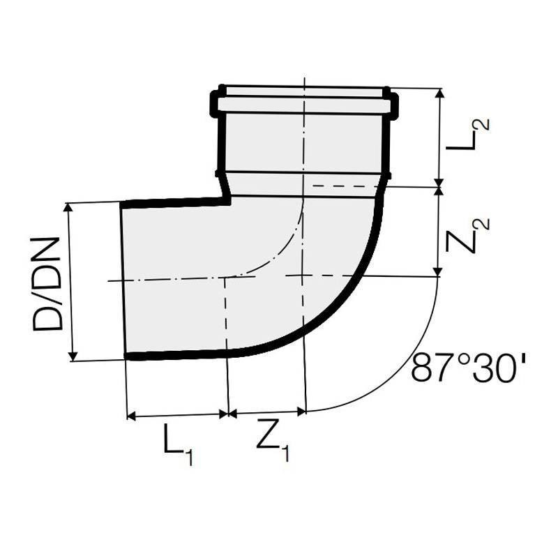 Curva de 87 grados 30' para tubos de descarga insonorizante de PP Polipropileno Valsir Triplus enchufable con las siguientes características :