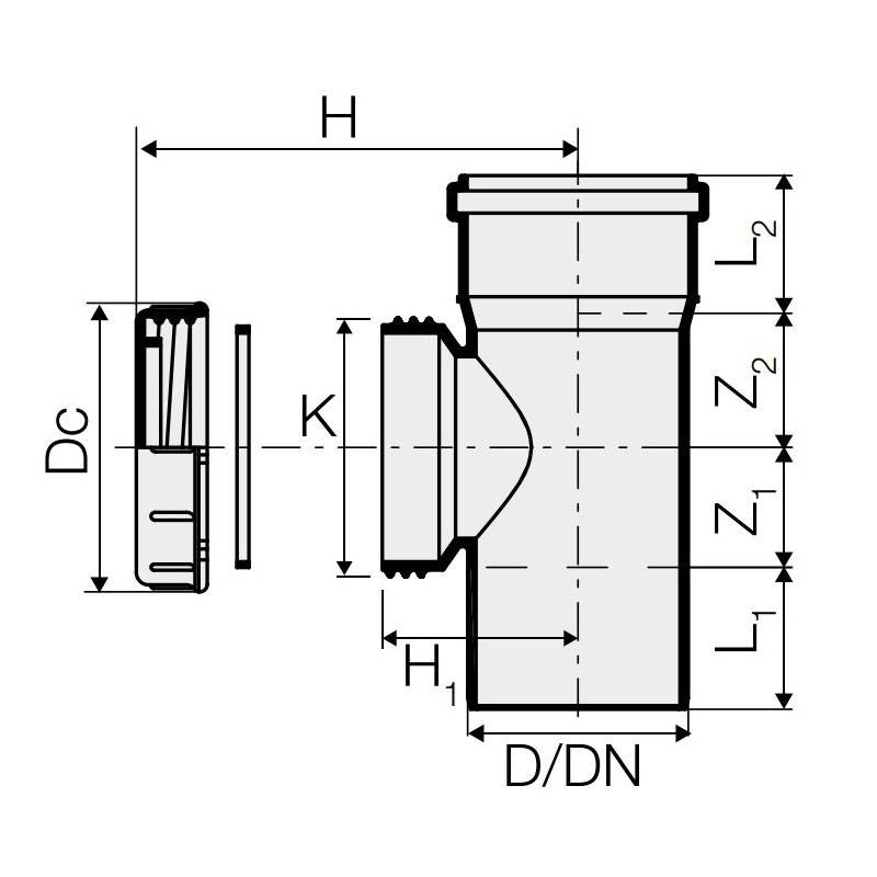 Racor de Inspección con Tapón Redondo Roscado de PP Polipropileno Valsir Triplus para tubos de descarga enchufable con las siguientes características: