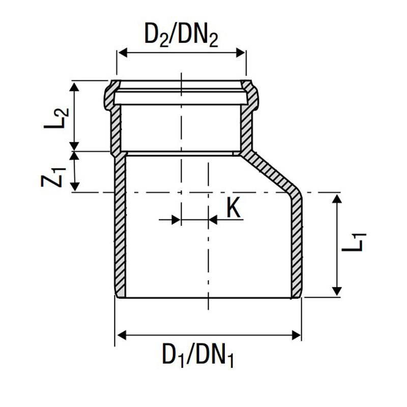 Racor excéntrico de aumento, adecuado para conectar tuberías de diferentes diámetros dentro de sistemas de drenaje. El accesorio reductor es una opción adecuada para circuitos de drenaje de aguas sucias en viviendas, edificios comerciales, instalaciones residenciales y más. El racor de aumento excéntrico utiliza el sistema de encaje con junta estanca para garantizar un cierre sólido y sin fugas. Además, el sistema de encaje está diseñado para soportar la dilatación debida a los cambios de temperatura. Gracias a su diámetro estándar, la reducción de PP puede conectarse con accesorios o tuberías de otros materiales, como PVC y PE-HD.