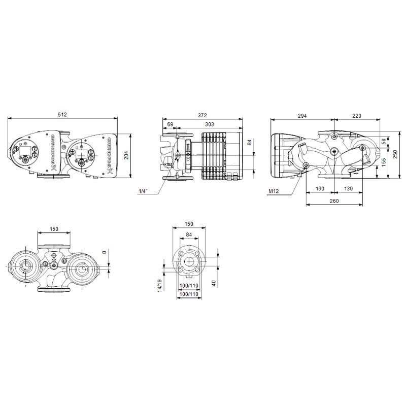 Circulador de doble rotor húmedo Grundfos MAGNA3 D 40-120 F con conexión de tubería DN 40, presión de trabajo PN 6/10, distancia entre ejes 250 mm. Adecuado para:
