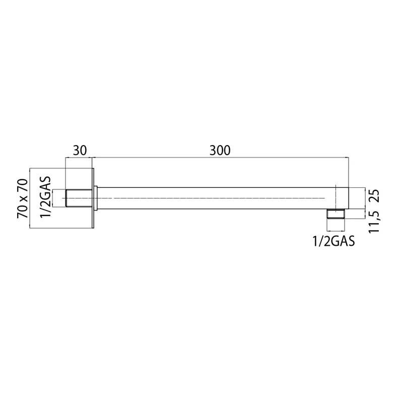 Brazo de ducha cuadrado horizontal Bossini con las siguientes características: