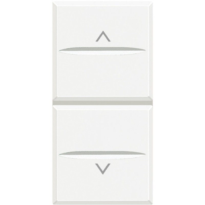Doble botón Bticino Axolute entrelazado Blanco. Normalmente se utiliza para las persianas de las casas. Tienes que permanecer con el dedo presionado para subir y bajar el obturador.