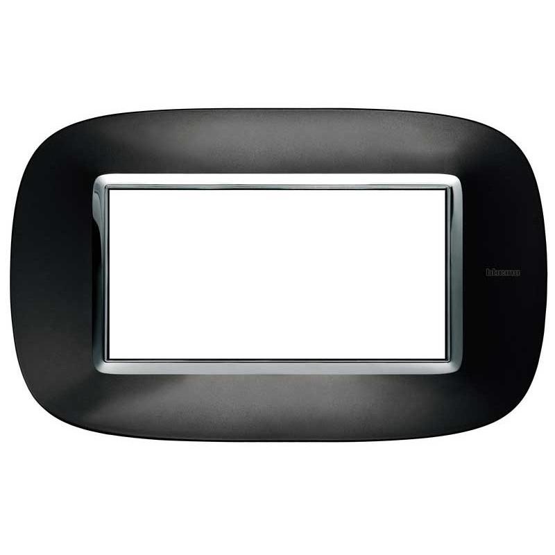 Placa elíptica en metal 4 plazas Bticino Axolute para soporte H4704. Color: ANTRACITA. No es posible instalar la placa en otras series Bticino, sino sólo en la serie Axolute.
