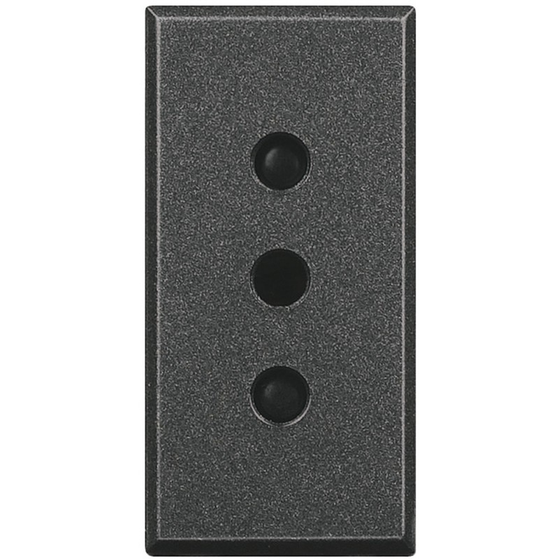 Toma de corriente Bticino Axolute Gris Antracita. La toma de corriente sólo permite introducir en su interior enchufes de 10A (enchufes pequeños).
