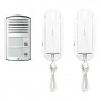 Kit de audio bifamiliar compuesto por intercomunicadores SPRINT L2 y pulsador LINEA 2000 con 2 botones de llamada.