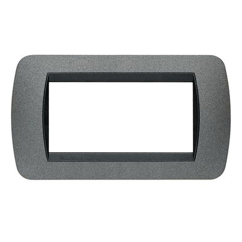 Placa Bticino LivingLight (ex internacional) 4 módulos (frutas, plazas) color grafito. La placa se puede montar en el soporte L4704 (modelo antiguo fuera de producción) y LN4704.