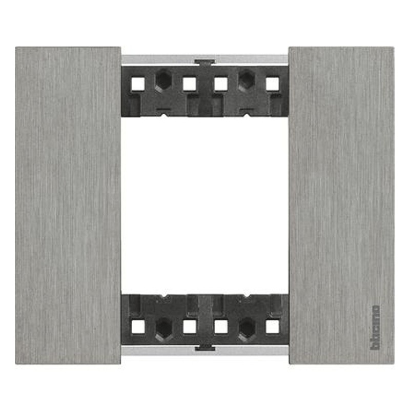 Bticino Living Now 2 Módulos de Acero del color se debe aplicar sobre el soporte K4702, material: material: aleación de zinc, tamaño de la altura de 86 de ancho 102,50.