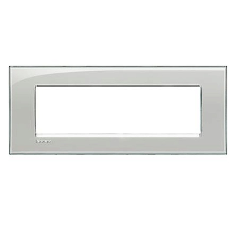 Placa Quadra 7 módulos (frutas, plazas) Bticino LivingLight gris hielo. Sólo se puede instalar el soporte LN4707. La placa no se instala en otras series Bticino, sino sólo en LivingLight.