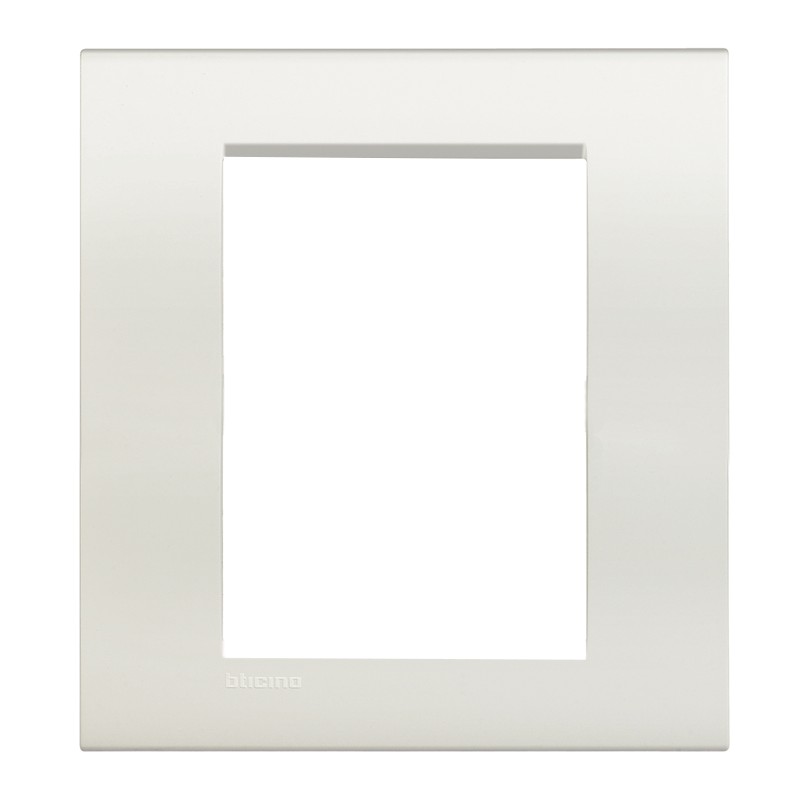 Placa Quadra 3 + 3 módulos (frutas, plazas) Bticino LivingLight blanco. Sólo se puede instalar en el soporte LN4726. La placa no se instala en otras series Bticino, sino sólo en LivingLight.