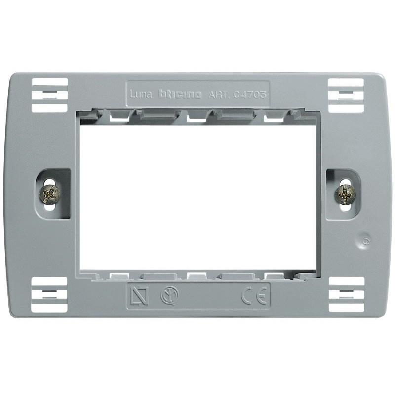 Soporte de resina para cualquier caja 3 módulos (frutas) también no marca Bticino. Este soporte permite enganchar sólo las placas Bticino Luna.