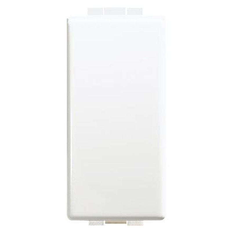 Falso módulo Bticino Luna, 1 módulo, color blanco. Se utiliza para rellenar los espacios vacíos de los soportes. Ejemplo: en un soporte de 3 módulos, 1 zócalo central, es necesario poner 2 módulos falsos.