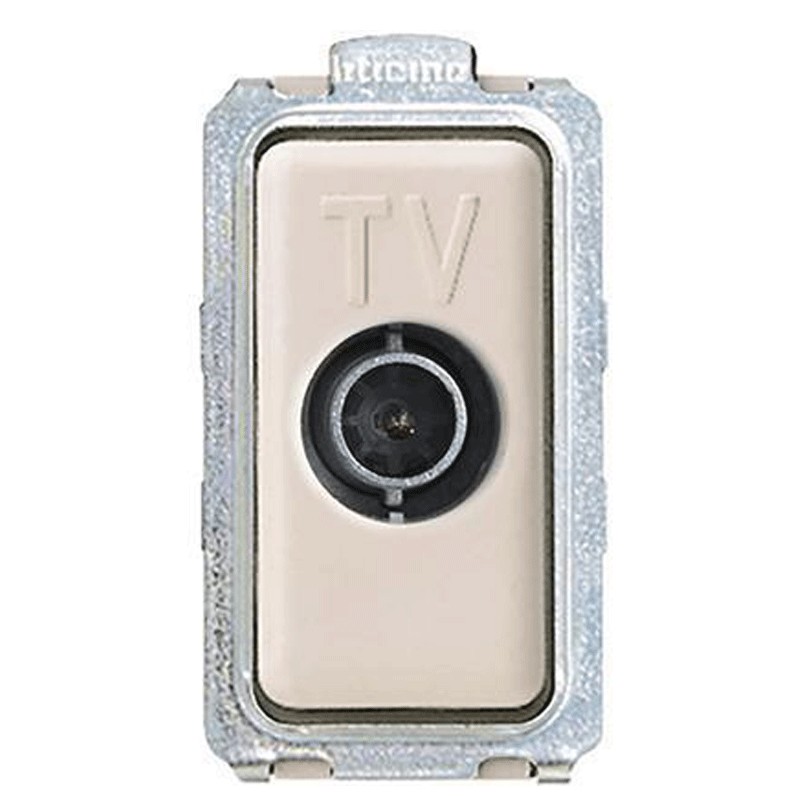 Bticino Magic toma coaxial directa de TV y Sat, para sistemas de antena de usuario único, también remoto y centralizado, y sistemas de satélite de usuario único y centralizado con paso de corriente y señal para la selección de canales, 1 módulo. Sustituye al antiguo modelo 5173D.