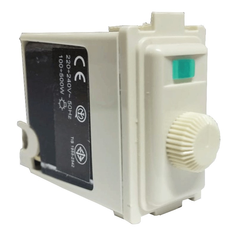 Regulador de intensidad Bticino Magic para lámparas de 220V y cargas resistivas, mando giratorio incorporado, potencia ajustable 100W-500W, 230Vac. Módulo para aplicar en los soportes 5367R,503R,504S,505R,506LS.
