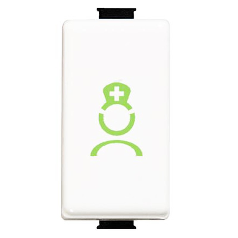 Puedo cancelar la llamada Botón/ WC NC Màtix con el icono de la enfermera de un color verde, para instalar en el cuarto de baño contiguo a la habitación del paciente. Debe estar conectado a la terminal de la habitación. Permite que el personal a cerca de una llamada de un cuarto de baño, en cumplimiento con la norma VDE reglamento . El dispositivo 1 módulo