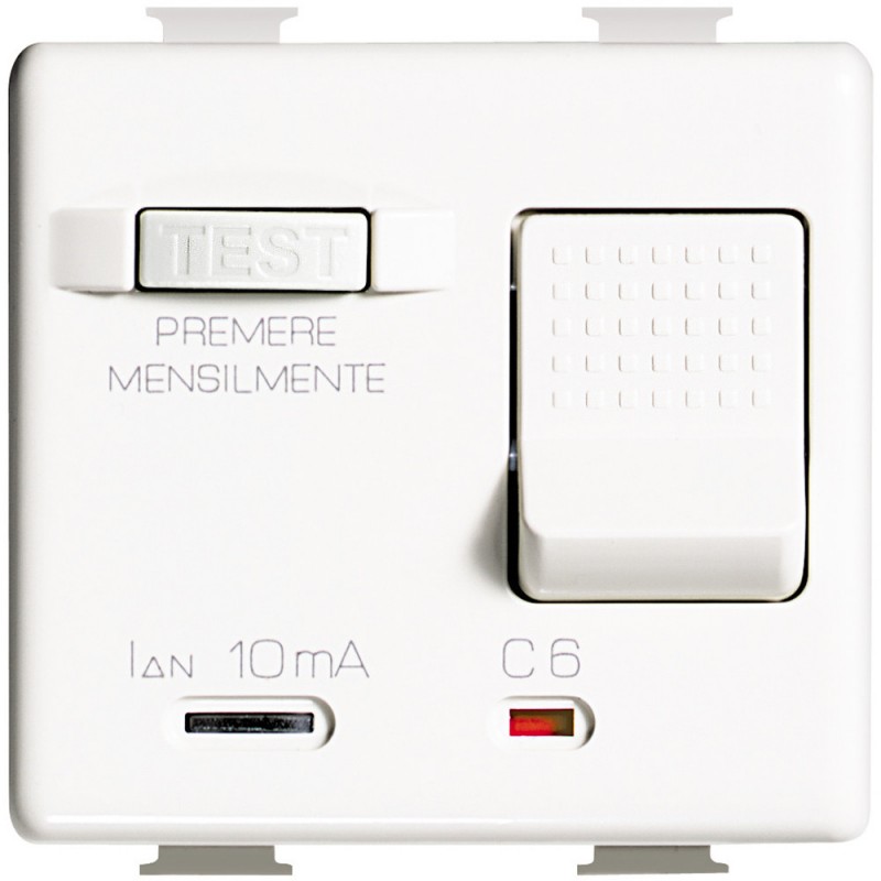 Disyuntor magnetotérmico diferencial (salvavidas) Bticino Matix, color blanco 1P+N, 1 polo protegido - 10A 230V Idn 10mA Icn 3kA.