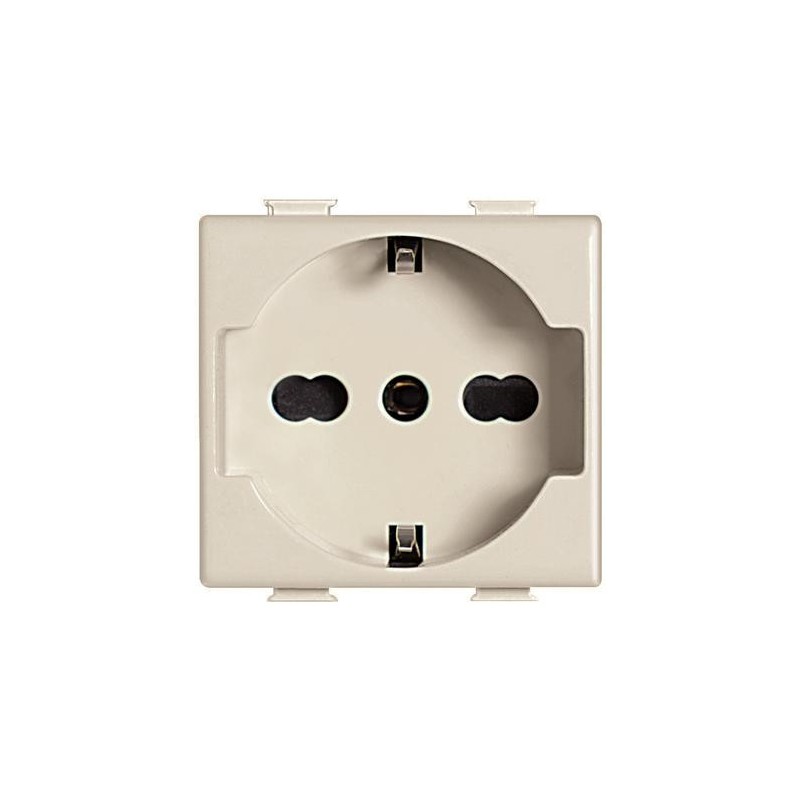 Toma de corriente schuko universal Bticino Matix TT color marfil . La toma de corriente Schuko también llamado socket alemán permite insertar dentro de cualquier enchufe(pequeño,grande y x).
