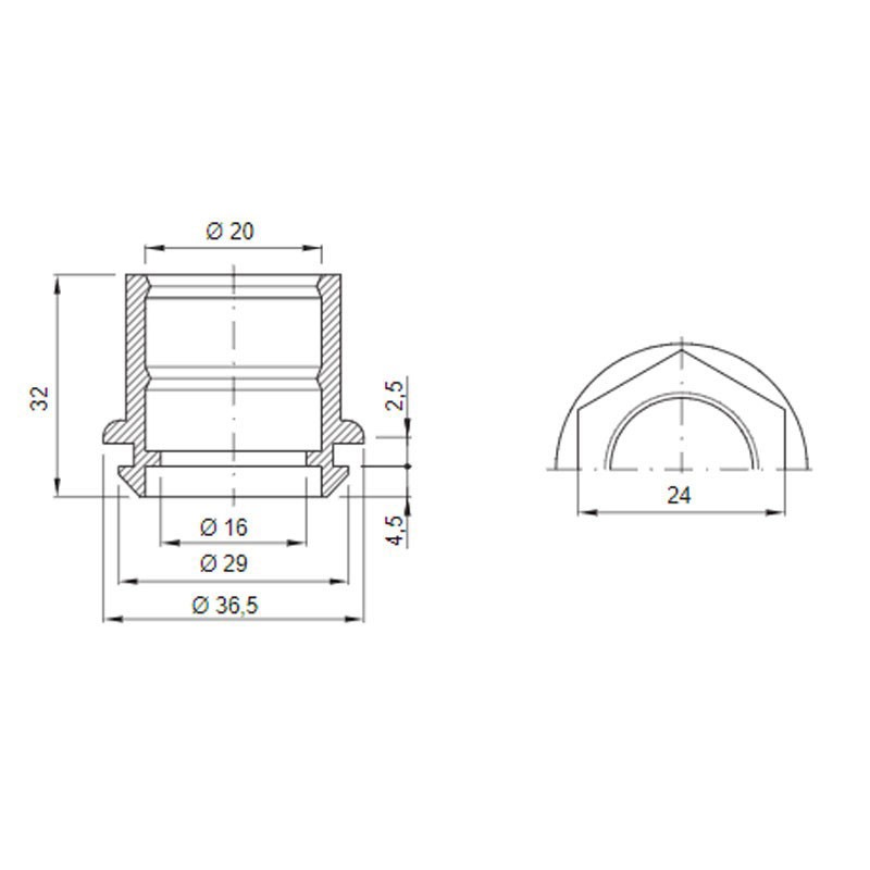 El cumplimiento con la norma EN 61386-1 y EN 60670-1 (según corresponda) Temperatura de funcionamiento -5 +60 °C Código Electrocod 21221 Ø orificio de montaje (mm) 37 Glow Wire Test de 750 °C Material de Polímero flexible Para tuberías de Ø exterior (mm) 32 Color RAL 7035 Gris Grado de protección IP44
