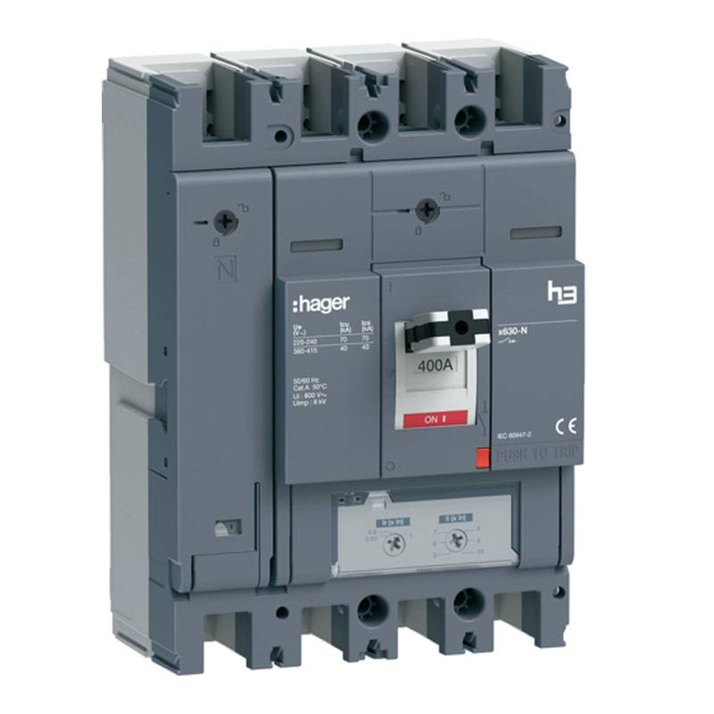 Disyuntor Hager h3 4P 400A 40KA neutro regulable HNJ401DR