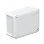 Caja de empalmes para conectar cables y líneas en interiores y exteriores protegidos. Forma rectangular sin entradas. Apto para montaje en pared, techo y placas de montaje. Con posibilidad de fijación interior y montaje en esquinas. Tapa con cierre rápido, precintable. Fabricado con materiales libres de halógenos. Caja de conexiones según DIN EN 60670. Ignífugo según DIN EN 60695-2-11, temperatura de ensayo 650 °C. Resistencia al impacto IK07 según DIN EN 50102.