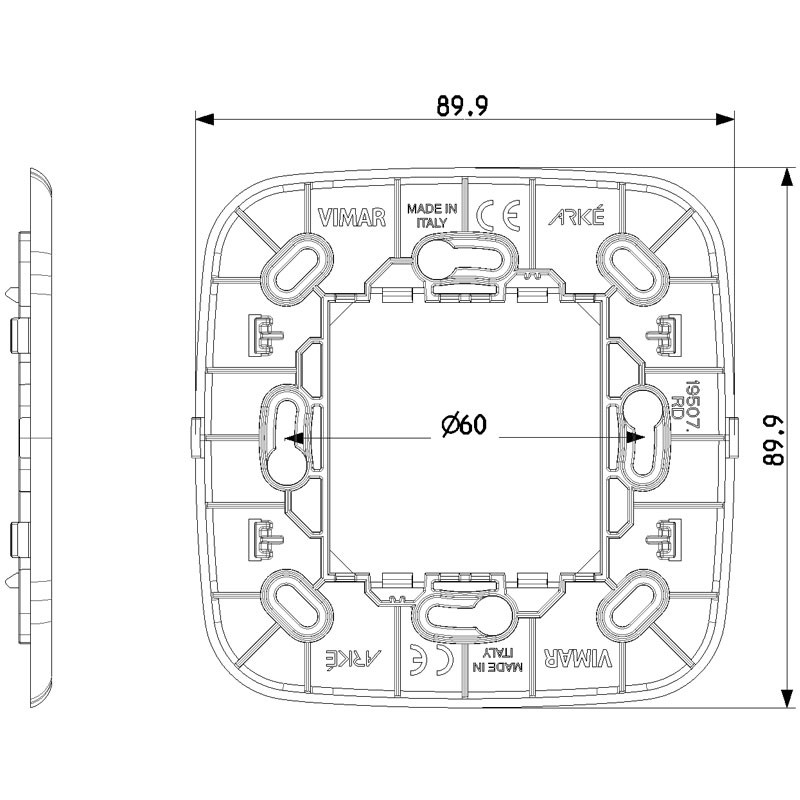 Soporte de radio Vimar Arkè para instalación en la pared para radiocontrol EnOcean, Bluetooth, ZigBee, color blanco.