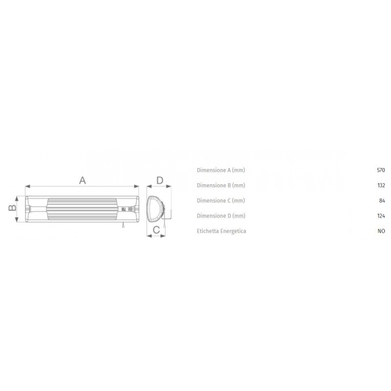 Estufa infrarroja Vortice THERMOLOGIKA DESIGN con 3 ajustes 600W/1200W/1800W con interruptor de tirante de montaje en la pared