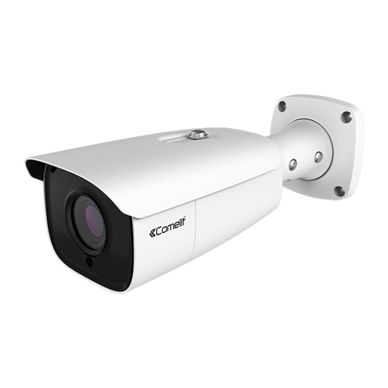 Cámara IP tipo bala Comelit Color Day & Night, lente motorizada varifocal de 2,8 a 12 mm con función de autoenfoque, resolución 4MP @ 30 ips.