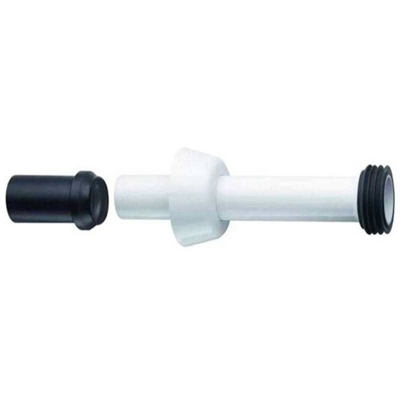 Conducto telescópico completo con rosetón abrazadera y tapa Valsir para sistemas de descarga enchufables, diámetro 40/45 mm, color blanco.