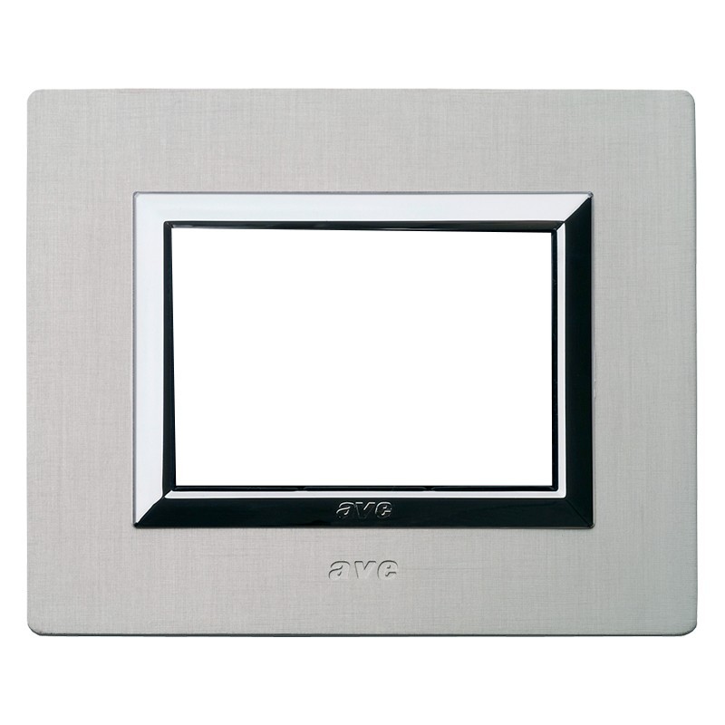La placa Ave Real del Sistema 44 de Aluminio de 3 módulos en un entorno natural de aluminio cepillado 44PA3ALS
