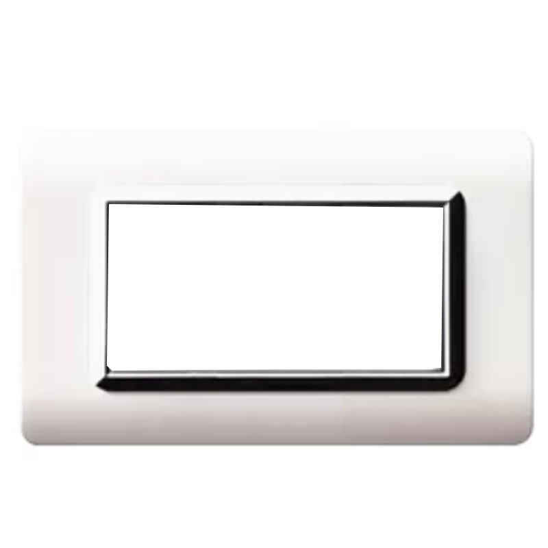 La placa de Polímero 44 para caja rectangular de color Blanco Ral 9010 - chrome frame - 4 módulos de Placas para los soportes y las formas de la Ave del Sistema 44