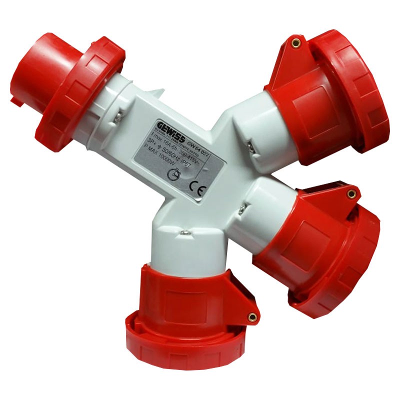 Gewiss multiplicador triple 3P+E 16A IP67 3 tomas de corriente rojo 400V GW64027
