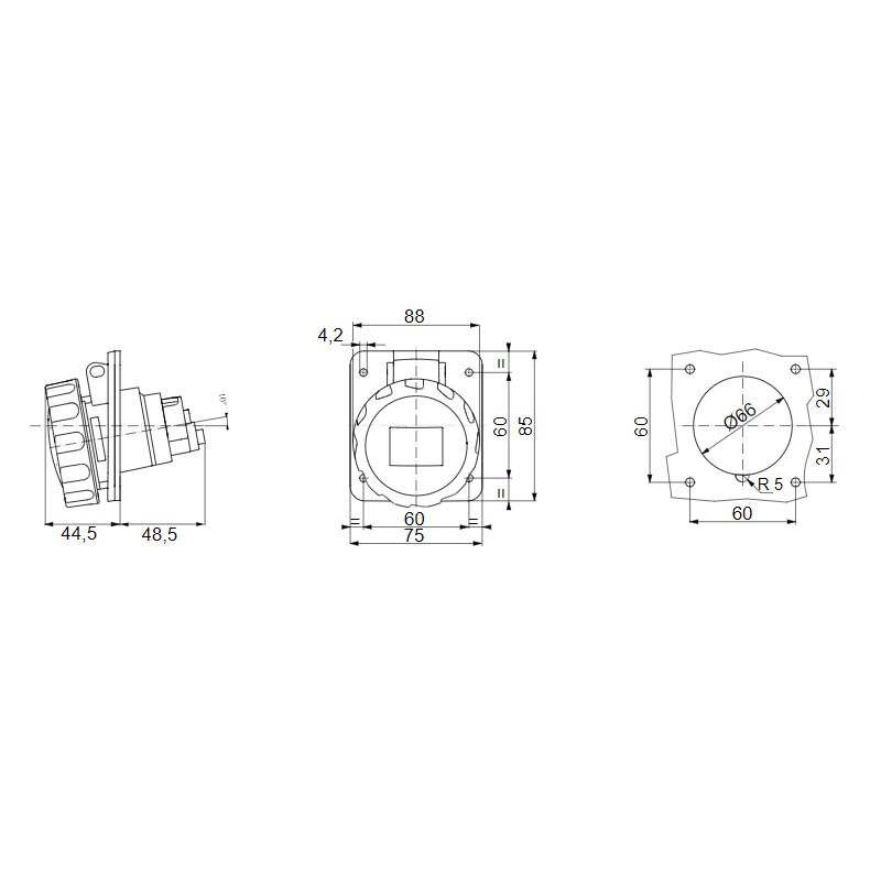 Toma fija empotrada Gewiss 10° HP, con las siguientes características: