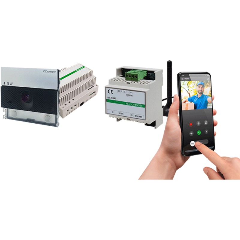 Comelit Ultra SB2 sistema de audio/vídeo kit básico conectado serie Ultra ampliable para sistema Simplebus 2 con kit K1406 para reenviar llamadas de videoportero a smartphone/tablet para sistema Simplebus 2 con conectividad incluida durante un año.