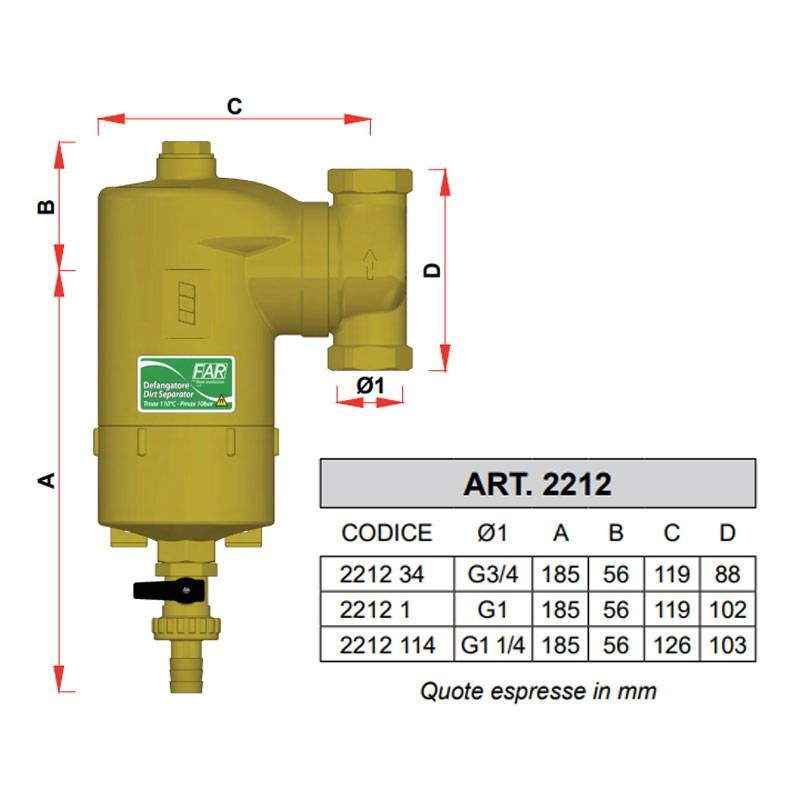 Desfangador giratorio Far 2212 con imanes 1"1/4 para sistemas térmicos 2212 114