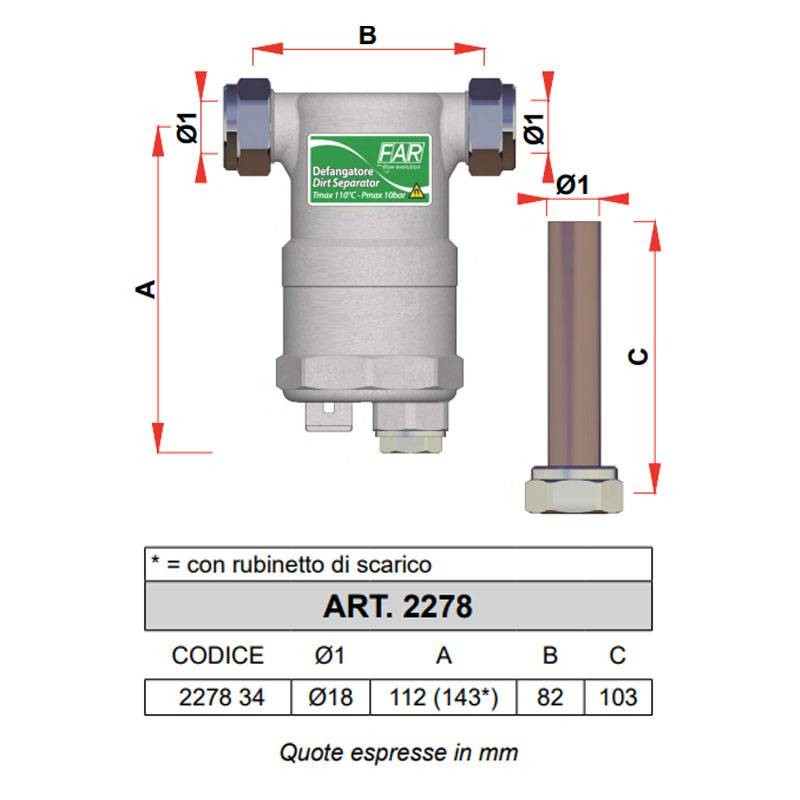 Desfangador magnético ultracompacto Far 2278 3/4" con conexiones en línea 2278 34