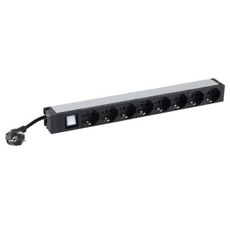 - Consta de 8 tomas de corriente alemanas estándar de dos vías con interruptor luminoso