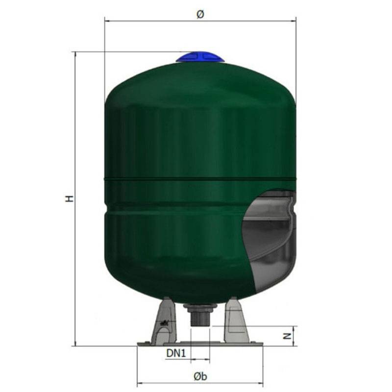 Tanque polivalente de membrana Elbi DPV-50 CE para calefacción/agua sanitaria con las siguientes características: