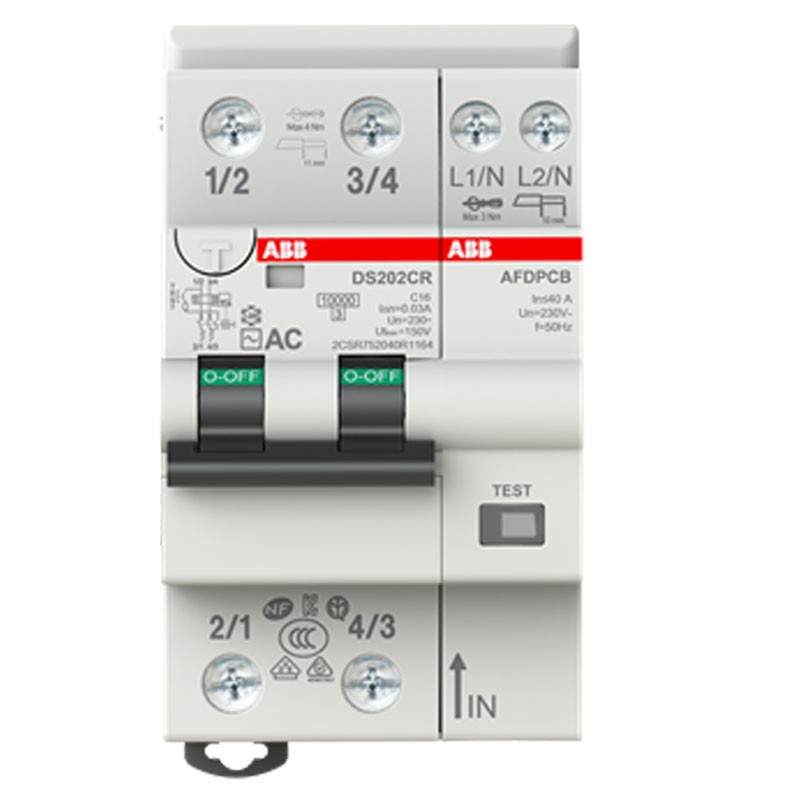 Interruptor Abb magnetotérmico diferencial 2 polos 16A 30mA AC tipo 6kA 2 módulos DS202CRC16AC30
